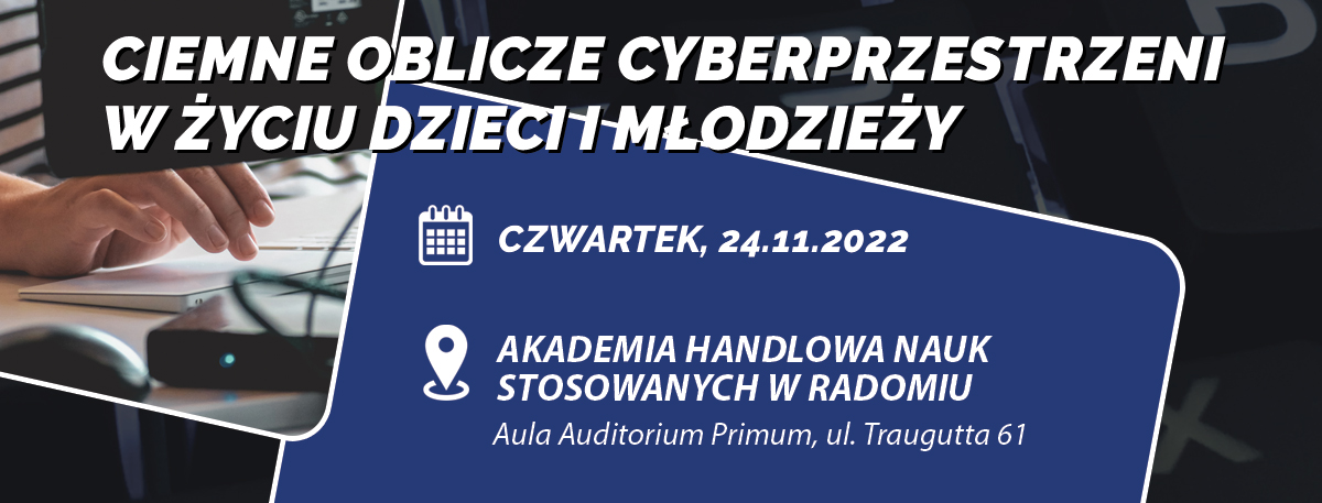 Już w czwartek, 24 listopada 2022 roku m.in. o mitach świata cyfrowego, współczesnych obliczach cyberprzemocy oraz ryzykownych zaburzeniach seksualnych online, opowiedzą praktycy i specjaliści podczas konferencji, której gospodarzem będzie Akademia Handlowa Nauk Stosowanych w Radomiu (Aula Auditorium Primum, ul. Traugutta 61)