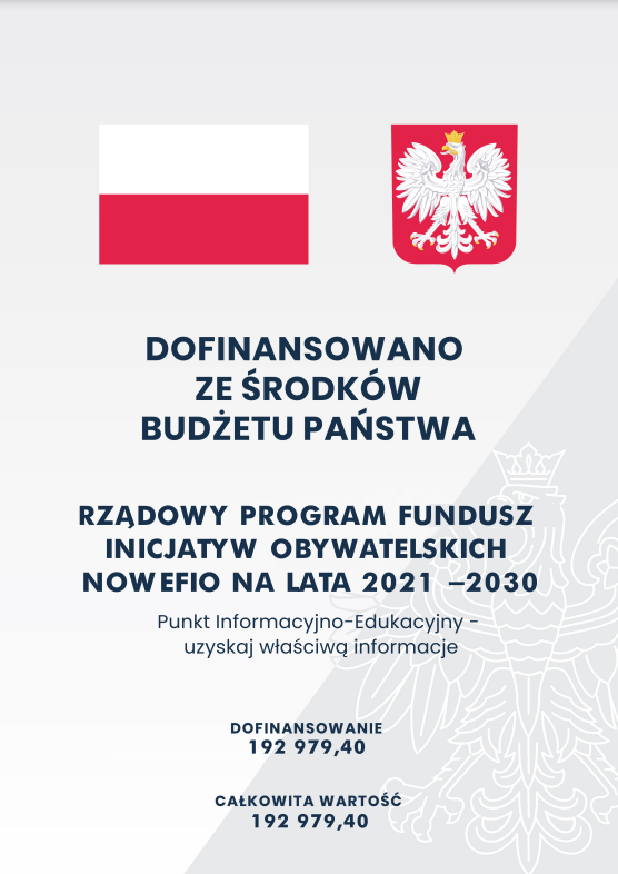 Projekt “Punkt Informacyjno-Edukacyjny – uzyskaj właściwą informację” finansowany ze środków Narodowego Instytutu Wolności- Centrum Rozwoju Społeczeństwa Obywatelskiego w ramach Rządowego Programu Funduszu Inicjatyw Obywatelskich NOWEFIO 2021-2030